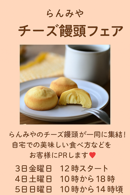 試食もご用意しますのでぜひこの機会にチーズ饅頭はいかがでしょうか✨